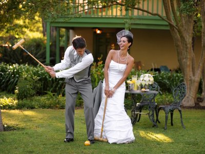 Fun factor Croquet is a familiar and fun outdoor game for everyone. A stylish, low-impact sport to be played with friends, taking breaks only for a sip of champagne and a nibble of hors d'oevers. With this game there are no wallflowers, everyone is quickly out hitting a blue, red, black or yellow ball clockwise through the a series of six wickets. It is known as a game of spirit, style and strategy.History