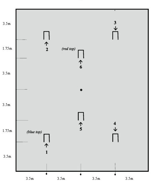The six hoops are set up on a field of approx. 18 x 14 meters. The presented diagram