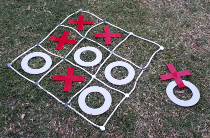 Fun factor Considering the symmetry of the grid, there are 26,830 possible games of Noughts and Crosses - not bad for a three by three grid.Although the game seems perhaps a bit simple compared to many other giant games from our portfolio, it is surprising how popular giant Noughts and Crosses can be when laid out at a wedding or party or other event. Probably not suitable for an adults only event, but anywhere there are children, it goes down well. Usually the Fathers are called over and challenged by the kids - which gives an excellent potential for embarrassment if Dad has had a glass too many and end up losing! History