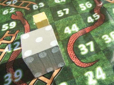 If, on completion of a move, a player's token piece lands on the lower-numbered end of a ladder, the player must move the token piece up to the ladder's higher-numbered square. If the player lands on the higher-numbered square of a snake, the token piece must move down to the snake's lower-numbered square. If a player rolls a 6, the player may, after moving, immediately take another turn; otherwise play passes to the next player in turn. The player who is first to bring their token to the last square of the track (100) is the winner. Included in the Kit:
